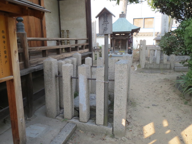 西福寺 雷井戸(大阪府和泉市) 2025.07.072025.07.26和泉雷井戸雷除け起源伝説さいふくじ かみなりいどこの井戸に雷が落ちた時、村人が上に石蓋を置いて出られなくした雷は二度とこの地に落ちないことを誓って放免された雷除けに「くわばらくわばら」と唱えるのはこの故事を起源とする(起源伝説)『日本の伝説8 大阪の伝説』(角川書店)p.48大阪府和泉市 桑原町
