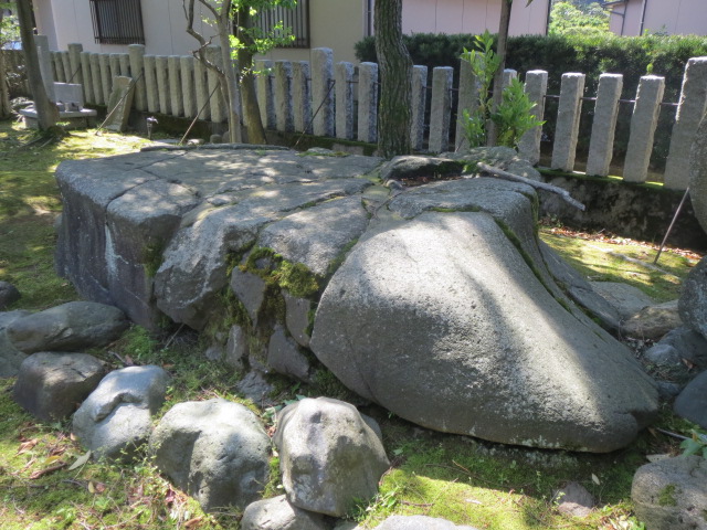 高鞆神社 大石(石川県金沢市) 2025.06.142025.07.03金沢名石大名たかともじんじゃ おおいし加賀藩主の前田利常(大名)が能登国富来町から庭石として運ばせた、亀の姿によく似た名石港から城に運ぶ途中、この地で首の部分が折れたためそのまま放置された大正15年(1926年)に高鞆神社の境内に移設された亀石(志賀町)と夫婦岩であった『日本の伝説12 加賀・能登の伝説』(角川書店)p.22石川県金沢市 藤江北