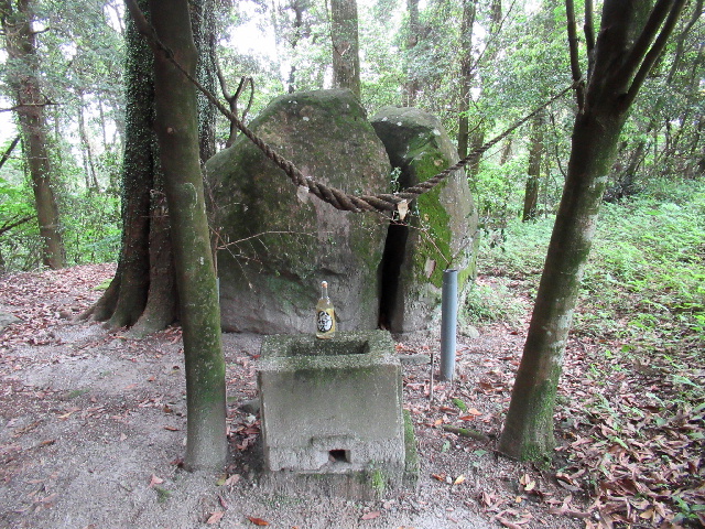 • 逃げ出した大蛇は高之峰の山頂近くの大石を尻尾で割るとその割れ目の中に隠れた